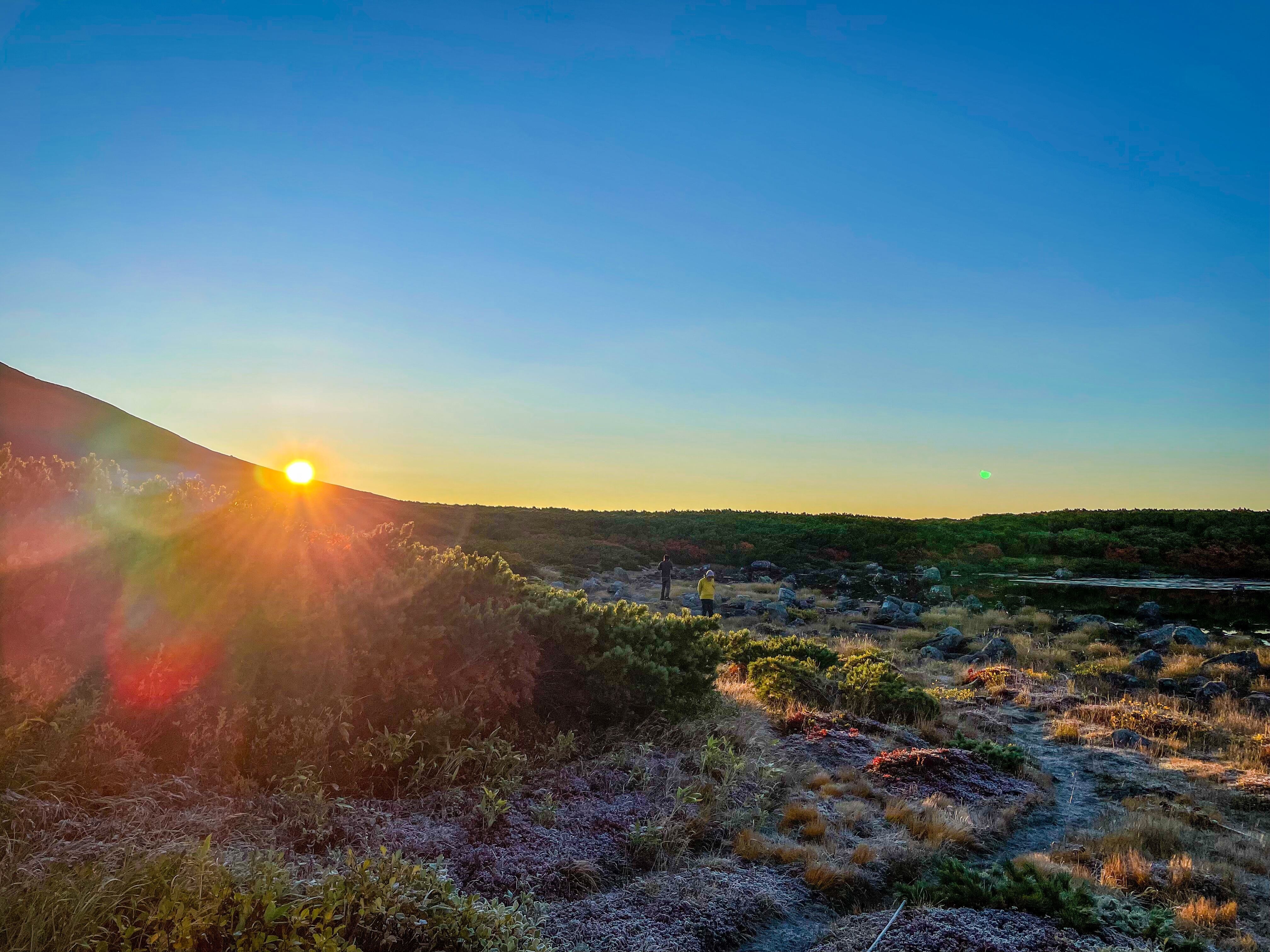 アコークロー(黄昏時)。夕陽が沈むその瞬間、空が輝く。夕陽が沈む幻想的なひとときは、人を魅了する。一日歩いてきた軌跡を振り返り、充実感と寂しさ、そして明日への胸の高鳴りが交錯する。(イエローベース)